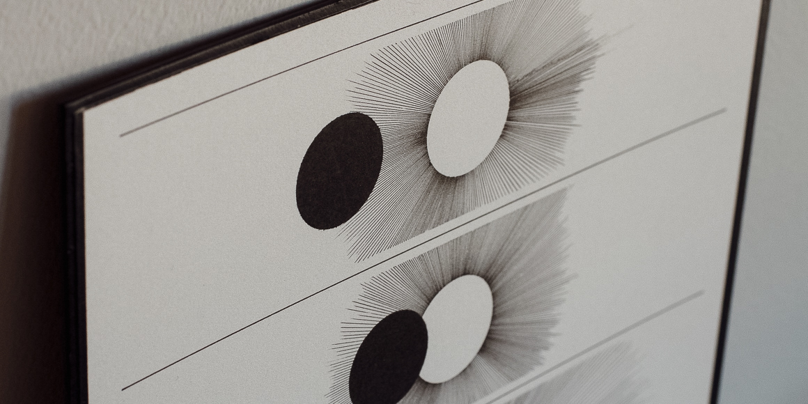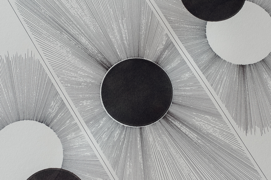 Hand-drawn radial lines extend from the edge of the sun, the corona flaring at peak eclipse.